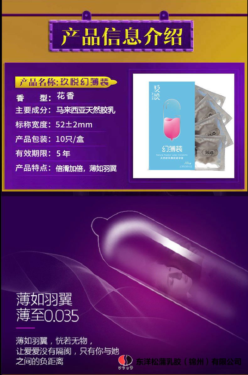 产品名称:玖悦避孕套经典幻薄装 产品类型:方包 、 600ML油量 产品规格:10只/盒 480盒/箱 执行标准:GB-T7544 ...